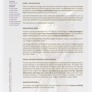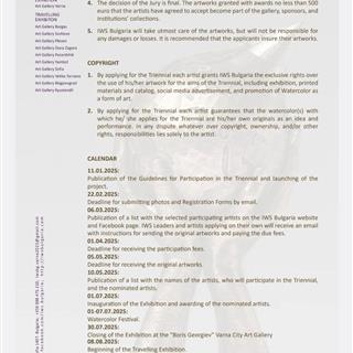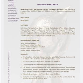 Date Published: 2025-02-01 iv international Watercolor & Spirit triennial Varna 2025 The 4th International Triennial "Watercolor & Spirit" - Varna 2025 is organized by IWS Bulgaria (International Watercolor Society Bulgaria).