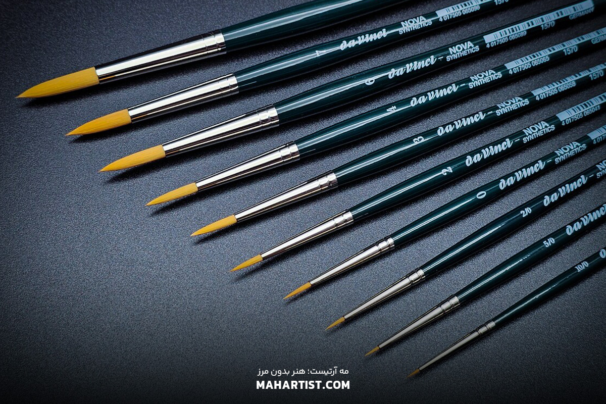 تاریخ انتشار: سه شنبه ۲۹ بهمن ۱۴۰۴ ۵۰ سال قلمموی NOVA داوینچی | بررسی ویژگیها، تاریخچه و کاربردهای سری NOVA "پنجاه سال پیش، داوینچی با معرفی سری NOVA، انقلابی در دنیای قلمموهای هنری ایجاد کرد. این قلمموهای سنتتیک با دسته سبز نمادین، پاسخی هوشمندانه به نیاز هنرمندان برای ابزاری بادوام و دقیق بودند. در این مقاله، به بررسی نیمقرن افتخار سری NOVA، ویژگیهای فنی منحصربهفرد آن و دلایلی که چرا همچنان انتخاب اول بسیاری از اساتید نقاشی است، میپردازیم. با مه آرتیست همراه باشید." دنیای ابزار هنری همواره در حال تغییر و تحول است، اما برخی نامها هستند که فراتر از یک محصول ساده، به یک استاندارد و معیار کیفیت تبدیل میشوند. وقتی صحبت از قلمموهای سنتتیک (مصنوعی) به میان میآید، نام سری NOVA داوینچی (Da Vinci NOVA) همچون ستارهای درخشان در تاریخ ۵۰ ساله اخیر میدرخشد. شاید برای بسیاری از هنرمندان جوان، وجود قلمموهای باکیفیت مصنوعی یک امر بدیهی باشد، اما ۵۰ سال پیش، دستیابی به چنین تکنولوژیای شبیه به یک رویا بود. امروز در مه آرتیست، به عنوان نماینده انحصاری برندهای معتبر جهانی همچون داوینچی، اسکودا و دوگان آرت، قصد داریم سفری عمیق به نیمقرن تجربه، نوآوری و هنر داشته باشیم و بررسی کنیم که چرا قلمموی NOVA همچنان یکی از محبوبترین انتخابها برای هنرمندان در سراسر جهان است. انقلاب سبز در دنیای نقاشی: تولد سری NOVA داوینچی برای درک ارزش واقعی قلمموی NOVA داوینچی، باید به اوایل دهه ۱۹۷۰ میلادی بازگردیم. دورانی که نقاشان و هنرمندان با چالش بزرگی روبرو بودند. تا پیش از آن زمان، تنها گزینه برای داشتن یک قلمموی باکیفیت که نوک آن تیز بماند و خاصیت ارتجاعی مناسبی داشته باشد، استفاده از موی طبیعی حیوانات (مانند سمور سیبری یا همان Kolinsky) بود. اما در آن سالها، قیمت موی طبیعی به شدت افزایش یافت و کمیاب شدن این متریال، زنگ خطری جدی برای جامعه هنری بود. درست در همین زمان حساس، کمپانی آلمانی داوینچی که همواره پیشرو در صنعت قلمموسازی بوده است، دست به یک نوآوری بزرگ زد. آنها با تحقیقات گسترده بر روی الیاف مصنوعی، موفق به خلق ترکیبی شدند که میتوانست ویژگیهای موی طبیعی را شبیهسازی کند. نتیجه این تحقیقات، تولد سری NOVA بود؛ اولین قلمموی سنتتیک جهان که نه تنها ارزانتر از نمونههای طبیعی بود، بلکه دوامی فوقالعاده داشت. دسته سبز رنگ این قلمموها، از همان ابتدا به نمادی از نوآوری و کیفیت تبدیل شد و اکنون پس از گذشت ۵۰ سال، همچنان در کیف ابزار حرفهایترین نقاشان دیده میشود. مهندسی الیاف: راز ماندگاری و کیفیت قلمموی سنتتیک داوینچی شاید بپرسید چه چیزی قلممو NOVA را از سایر قلمموهای مصنوعی موجود در بازار متمایز میکند؟ پاسخ در مهندسی دقیق الیاف آن نهفته است. بسیاری از قلمموهای مصنوعی معمولی، تنها از یک سایز و ضخامت فیبر پلاستیکی ساخته میشوند که نتیجه آن، عدم جذب آب کافی و دفرمه شدن سریع نوک قلممو است. اما قلموهای داوینچی در سری NOVA از تکنولوژی متفاوتی بهره برد. تکنولوژی ترکیب قطرهای مختلف (Multi-Diameter) متخصصان داوینچی دریافتند که موی طبیعی حیوانات دارای ساختاری مخروطی است و تمام تارهای مو ضخامت یکسانی ندارند. آنها برای شبیهسازی این ساختار در سری NOVA، از ترکیب الیاف سنتتیک با قطرهای مختلف استفاده کردند. این کار باعث شد: فضای خالی میکروسکوپی بین الیاف ایجاد شود که مانند موی طبیعی، آب و رنگدانه را در خود ذخیره کند (خاصیت مویینگی). نوک قلممو بسیار تیز و منسجم باقی بماند و هنگام کار روی بوم یا کاغذ، پخش نشود. خاصیت ارتجاعی (Spring) یا فنریت قلممو به تعادل برسد؛ نه آنقدر سفت که رد قلم بیاندازد و نه آنقدر نرم که کنترل از دست برود. این مهندسی دقیق باعث شده تا محصولات داوینچی، به ویژه سری NOVA، عمری بسیار طولانیتر از رقبا داشته باشند و حتی با استفاده مداوم، فرم اصلی خود را حفظ کنند. ویژگیهای کلیدی سری NOVA که هر هنرمندی باید بداند اگر قصد خرید قلممو برای تکنیکهای مختلف را دارید، شناخ