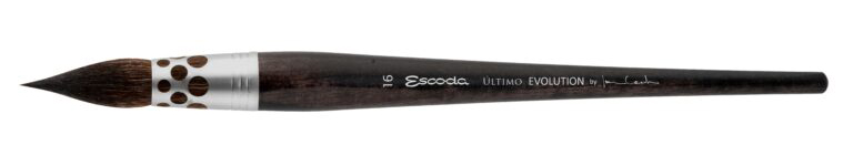 این رایج‌ترین شکل قلم‌مو است. یک قلم‌مو گرد با کیفیت از برند اسکودا، باید دارای یک "شکم" (Belly) مناسب برای ذخیره آب و یک نوک بسیار تیز باشد. ویژگی منحصر به فرد قلم‌موهای گرد اسکودا این است که حتی در سایزهای بزرگ (مثل سایز 12 یا 14)، همچنان نوک آن‌ها مثل سوزن تیز باقی می‌ماند. این یعنی شما با یک قلم‌مو می‌توانید هم آسمان را رنگ کنید و هم جزئیات ظریف چمن‌ها را بکشید.